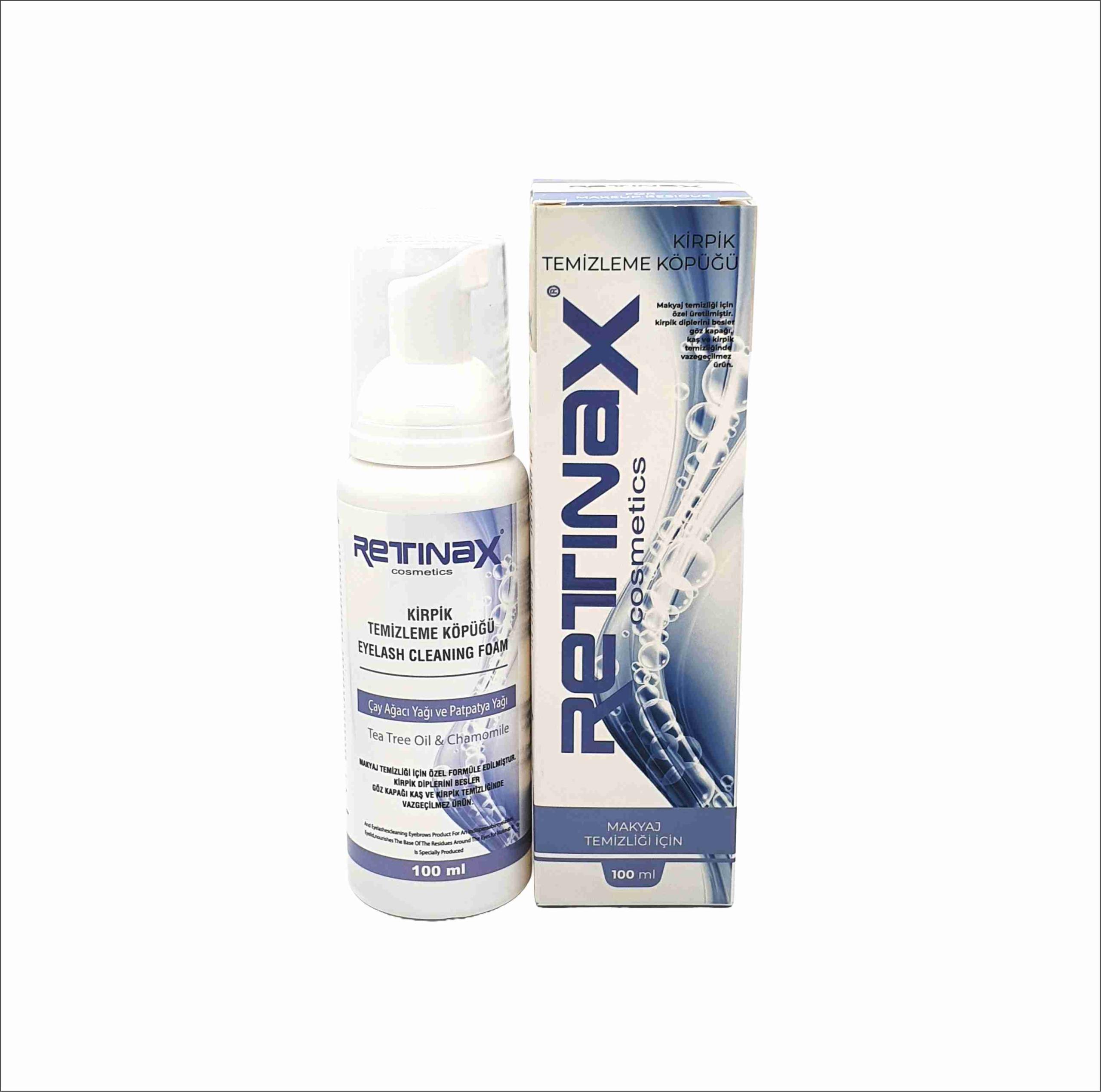 Retinax Kirpik temizleme köpüğü kirpik diplerindeki dökümeler kepeklenme ve çapaklanma için üretilmiştir. Kirpik diplerini besler kirpik dökülmlelerini engeller. Makyaj sonrası yıpranan kirpikerinizin onarımında yardımcı olur.